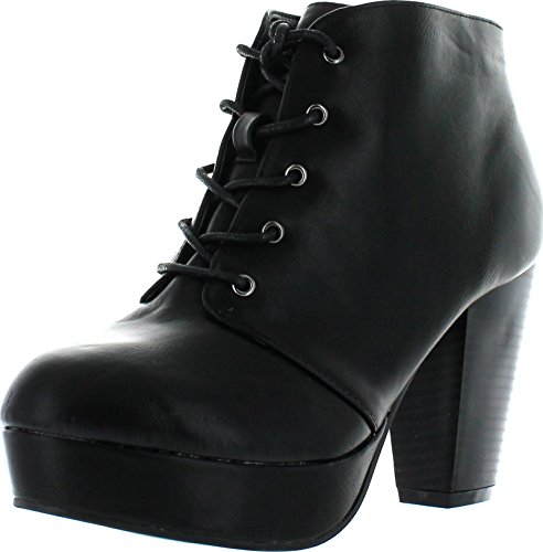Titan Mall Forever Camille-66 Womens Fashion Chunky Heel Lace Up Ankle Booties (8 B(M) US, Black)
