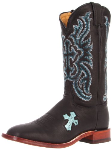 With a stunning mix of contemporary and vintage western design, Tony Lama gets your cowgirl boot design just right. Tony Lama cross cowgirl boot functions a black ol\' buck leather foot below a fancy stitched twelve\" matching leather shaft. Black leather piping. Leather lining. Double stitched 3/4 leather welt. Smooth leather sole. Low one one/eight\" stockman heel with rubber grip surface.