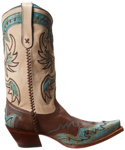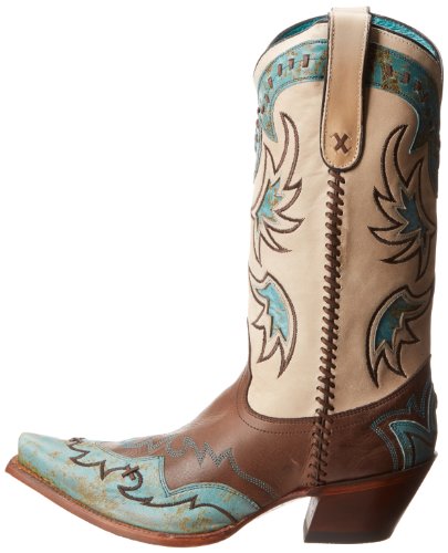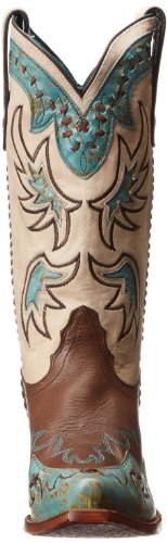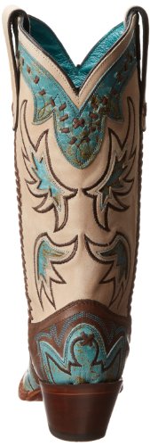 Authentic western to its core, the Tony Lama one hundred% Vaquero boot is handcrafted for today\'s cowgirl. This pretty, but practical, cowgirl wingtip boot characteristics a smooth leather foot with marbled leather wingtip overlay beneath a white leather shaft decorated with leather lacing and marbled leather inlays. Marbled leather overlay at collar. Leather lining. Single stitched leather welt. Cowgirl boot heel with stabilizing rubber grip surface. Imported.