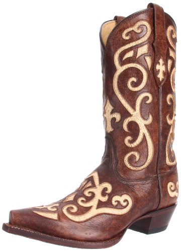 Tony Lama Women's Earth with Creme Inlay VF3024 Boot,Earth Santa/Creme,7 B