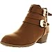 Top Moda Cl-14 Women's Buckle Straps Stacked Low Heel Ankle Booties,Tan,8