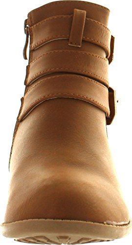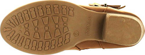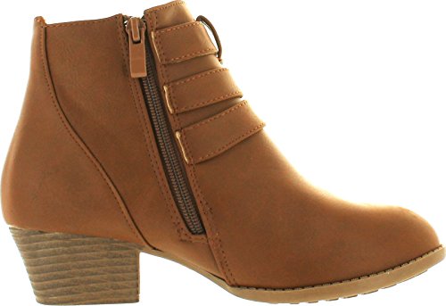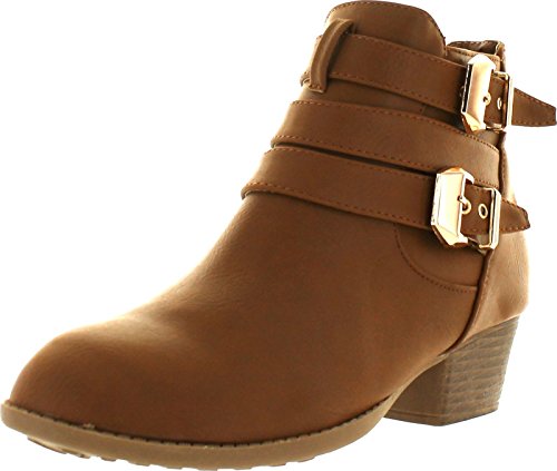 Top Moda Cl-14 Women's Buckle Straps Stacked Low Heel Ankle Booties,Tan,8