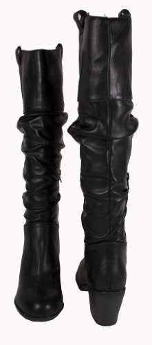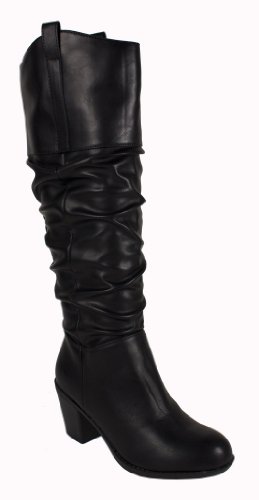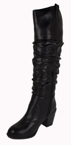 Tousle! By City Classified Slouchy Classic Knee-high Boots with Pull-on Tabs, Chunky Heels, and a Cowboy, Midwestern Feel, black leatherette, 7 M