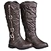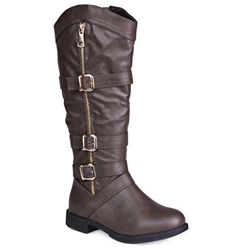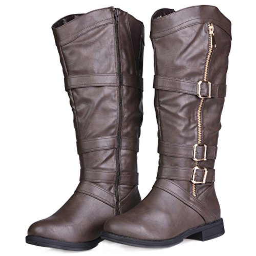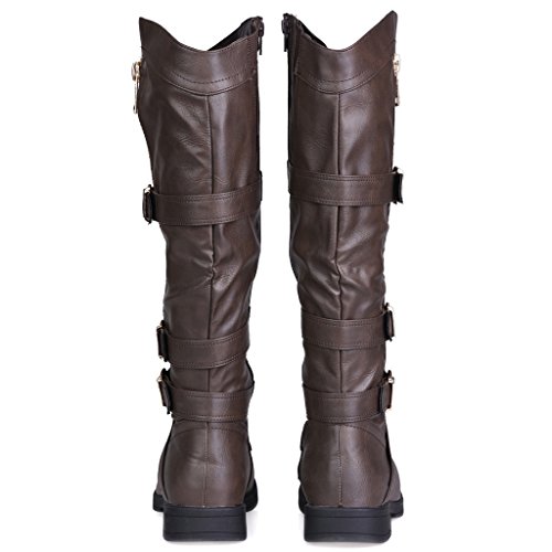 Twisted Women's AMIRA Wide Width/Wide Calf Faux Leather Knee-High Western Flat Riding Boot with Multi Buckle Straps - BROWN, Size 8
