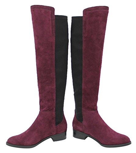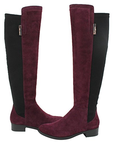 The Vince Camuto Kellisi Women\'s Stretch Leather Equestrian Boots are best for amping up your wardrobe! These stunning boots characteristic: Soft suede leather, minimal heeled, treaded rubber sole for the ideal mixture of fashion and comfort, neoprene upper, round toe, logo hardware accents, cushioned insole, and stacked heel.Approximate Measurements:Heel Height: 1.5\"Shaft Height: 19\"Type: KELLISI