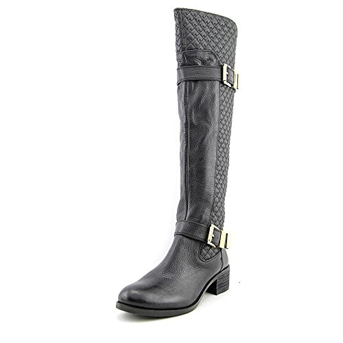 Stand tall in these luxe quilted leather boots with glam gold-tone buckle detailing from designer VINCE CAMUTO.