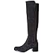 - Knee-high riding boot with neoprene stretch back panel and block heel