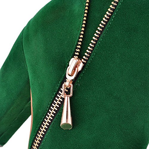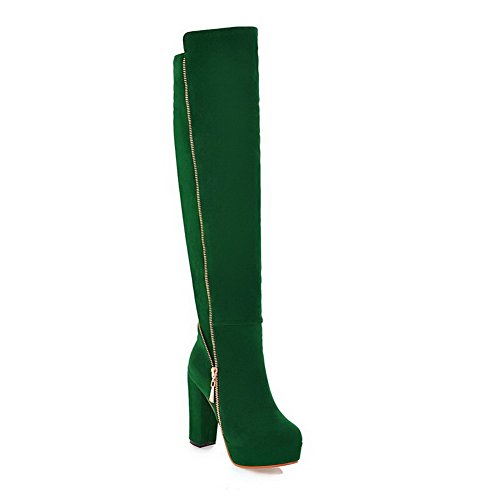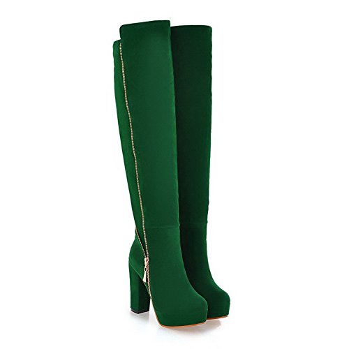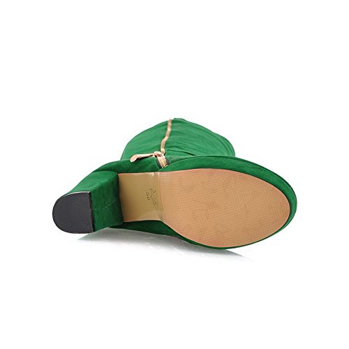 WeenFashion Womens Closed Round Toe High Heel Platform Frosted PU Short Plush Solid Boots with Zipper, Green, 8.5 B(M) US