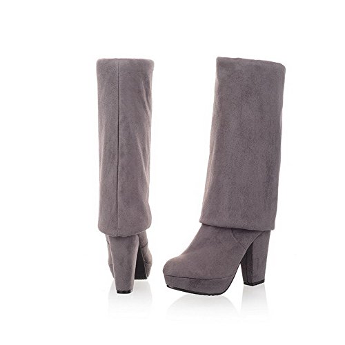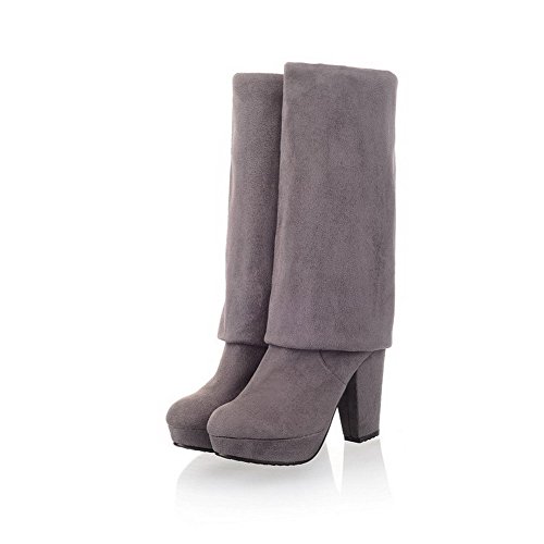 WeenFashion Womens Round Closed Toe High Heels Imitated Suede Frosted Solid Boots with Chunky Heels, Grey, 7.5 B(M) US