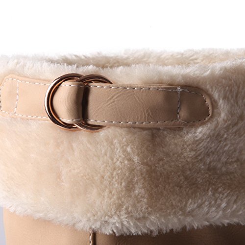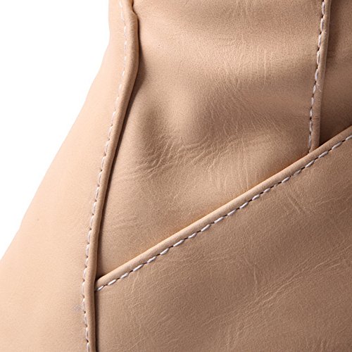 WeiPoot Womens Closed Round Toe High Heels PU Soft Material Solid Boots with Chunky Heels and Platform, Apricot, 7.5 B(M) US