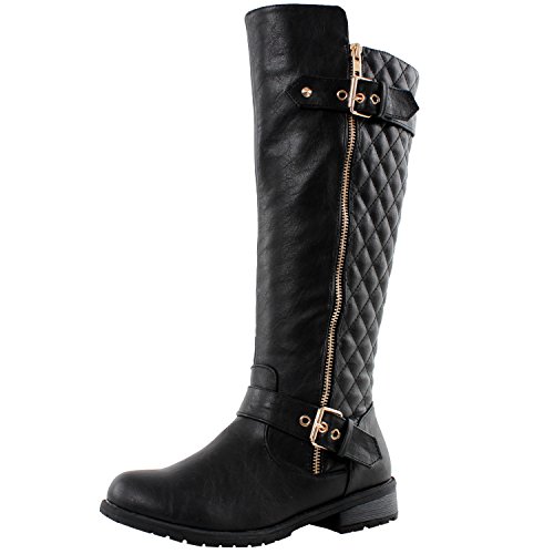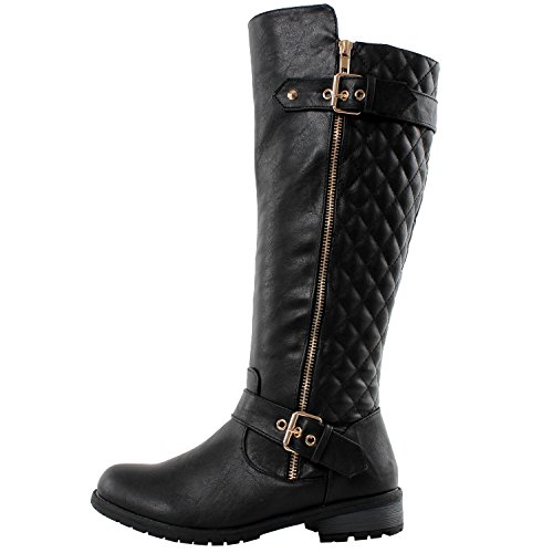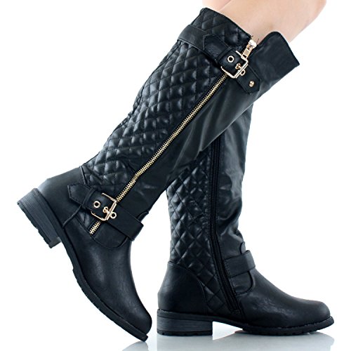West Blvd Atlanta Quilted Riding Boots, Black Pu, 10