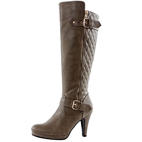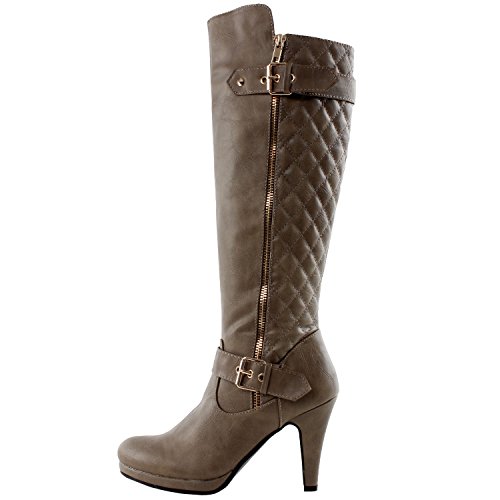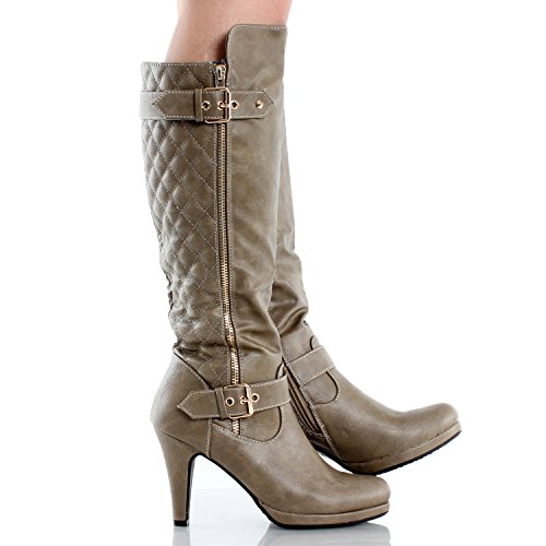 Quilted Riding Motorcycle Women Substantial Heel Buckle Knee High Dress Boots