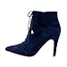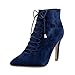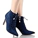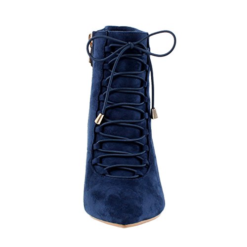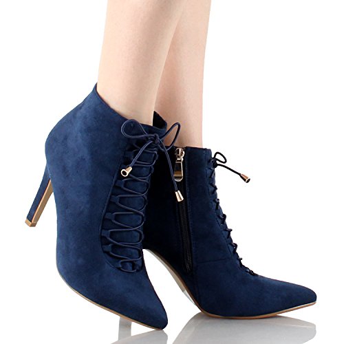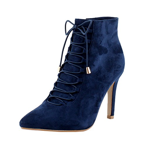This ankle boot functions synthetic suede upper, lace-up front, pointy toe, stiletto high heel, and it is finished with a side zipper for effortless on-and-off put on.