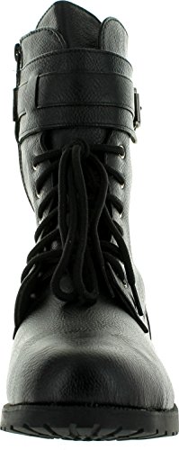 We really like the fold-above cuff selection of these boots from WEST BLVD! Fold in excess of the leading shaft of these ankle boots to expose the plaid lining or lace \'em all the way up. Featuring synthetic leather upper, lace-up closure, round toe front, stitching accent, and lower stacked heel. Finished with a lightly padded insole and smooth interior lining for comfort.