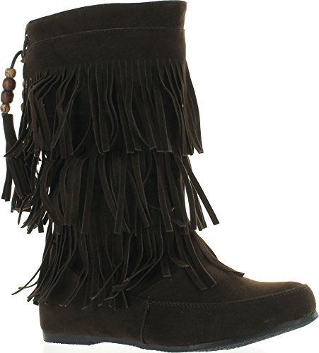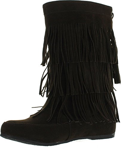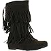 Add a tiny shake and fun to your outfits when you stroll out in West Blvd\'s three-tier fringe moccasin boots! Inspired by the totally free-spirited Southwestern trend, these women\'s pull-on boots function faux suede uppers that gives a breathable and flexible fit and truly feel to them. Along with a moc toe design and a beaded tassel at the back of the boot\'s shaft, these boho booties are cozy and adds an earthy look to your outfits!