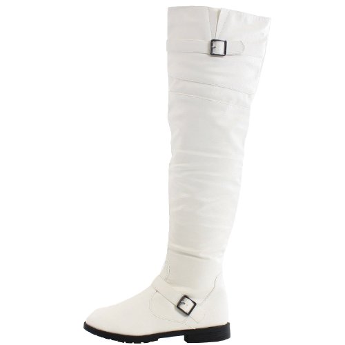 West Blvd Womens TOKYO THIGH HIGH Boots Over The Knee Riding Equestrian Motorcycle Biker Flat Shoes,West-Blvd-Tokyo-Thigh-High White Pu 7