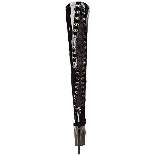 Women's Glossy BlackThigh High Back Lace Up Boots with 7 Inch Stiletto Heel Size: 7