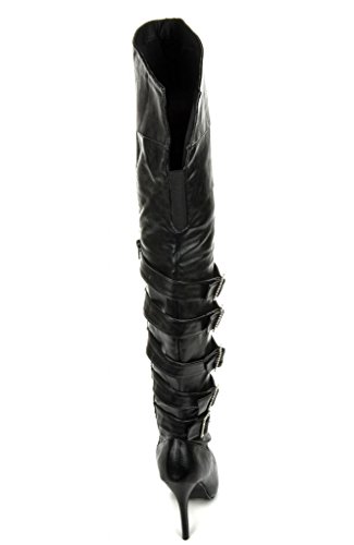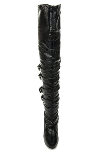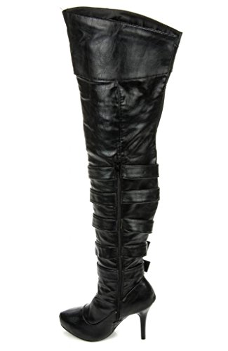 Women's High Heel Platform Fetish Sexy Dom Thigh High Boots FURGE-81 BLACK