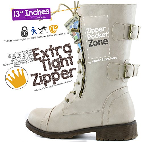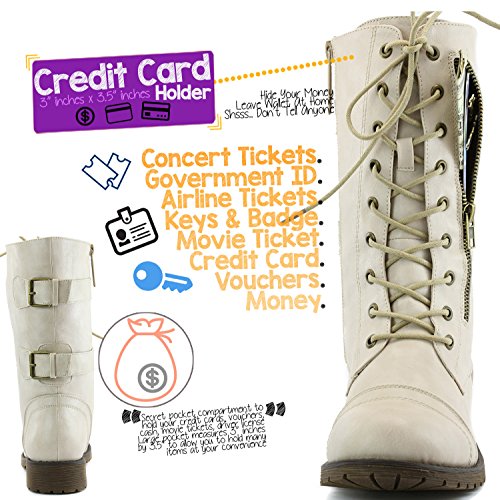 Women's Military Lace Up Buckle Combat Boots Mid Knee High Exclusive Credit Card Pocket, 9