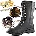Women's Military Up Buckle Combat Boots Mid Knee High Exclusive Credit Card Pocket, Black, 10
