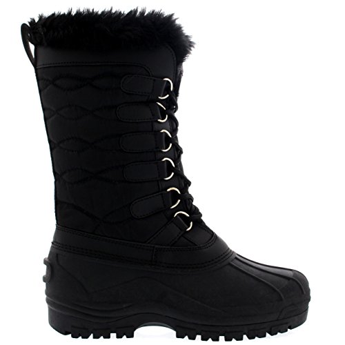 Womens Nylon Cold Weather Waterproof Snow Duck Winter Rain Fur Cuff Lace Boot - 9 - BLK40 YC0132