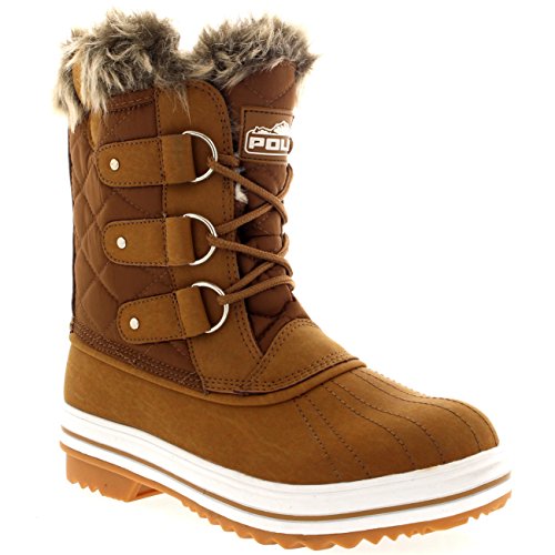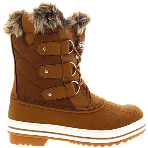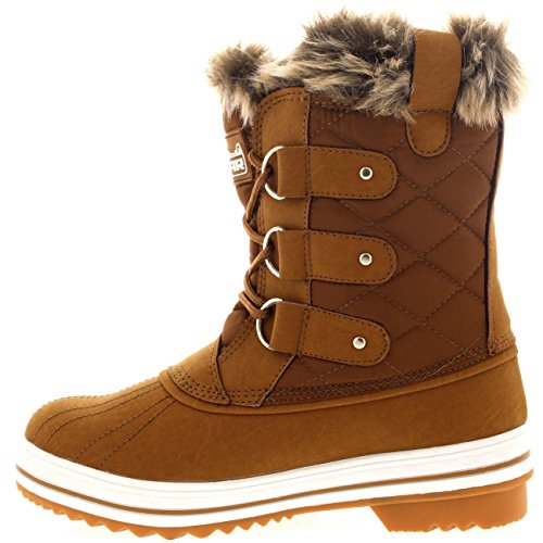 Womens Snow Boot Nylon Short Fur Rain Winter Waterproof Snow Warm Boots - Tan - 8 - 39 - CD0033