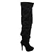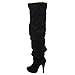 Women's Thigh High Slouchy Ruching Heel Boots MCKAY BLACK