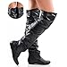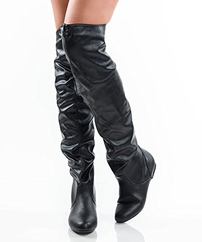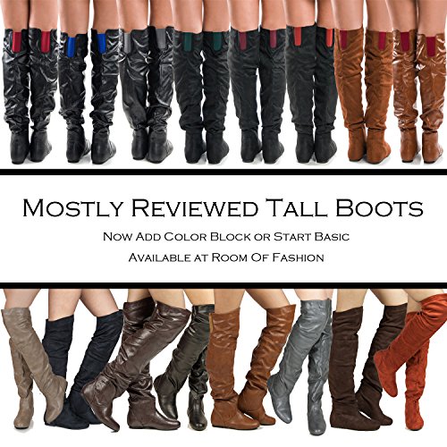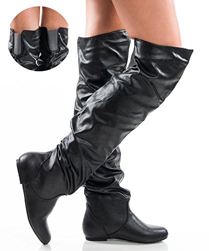 Women's TREND-Hi Over-the-Knee Thigh High Flat Slouchy Shaft Low Heel Boots by ROOM OF FASHION BLACK GREY PU (7.5)