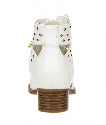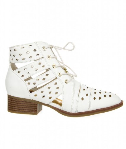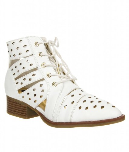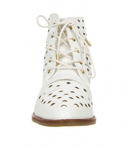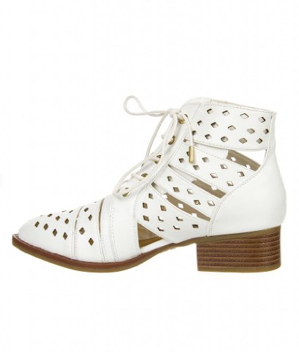 These trend setting minimize out booties are the ideal transition shoe for the Spring and Summer. Featuring faux leather materials with chunk heel. Lace up closure. Heel: 1 1/2 inch